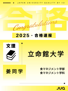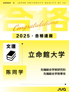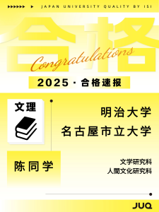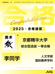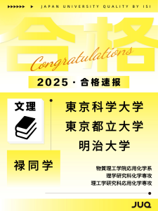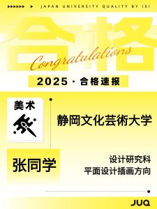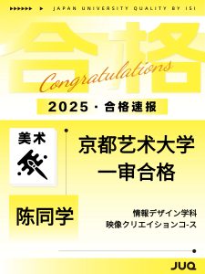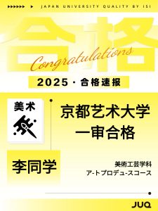 2025.10.30 持续更新中!本年度最新合格速报 2025年(2026年度入学)日本升学塾JUQ的学员们再创佳绩,陆续传来合格喜讯!让我们一同见证同学们的努力成果,期待接下来有更多的好消息传来! 文理: 艺术类